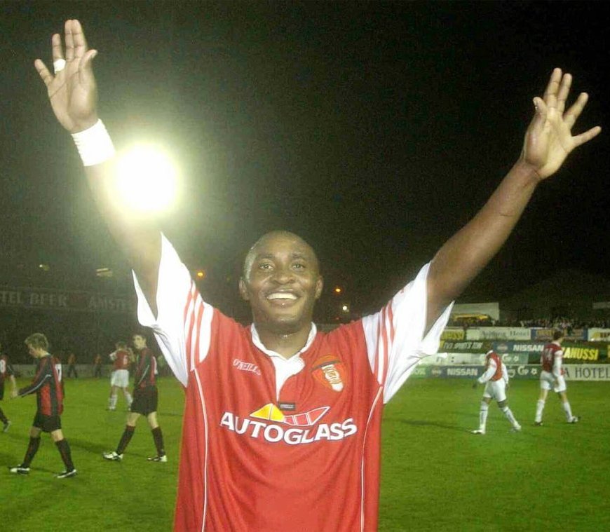 Following on from our Christy Fagan t-shirt, we are releasing a limited edition one featuring a design of Charles Livingstone Mbabazi. The iconic image on the shirt is Charlie celebrating after his mercurial performance in the 4-3 win over Bohemians in the 2003 FAI Cup Semi Final replay in Richmond Park. Tragically, later that month against the same opposition, Charlie collapsed on the pitch and … Continue reading Charles Livingstone Mbabazi T-shirt